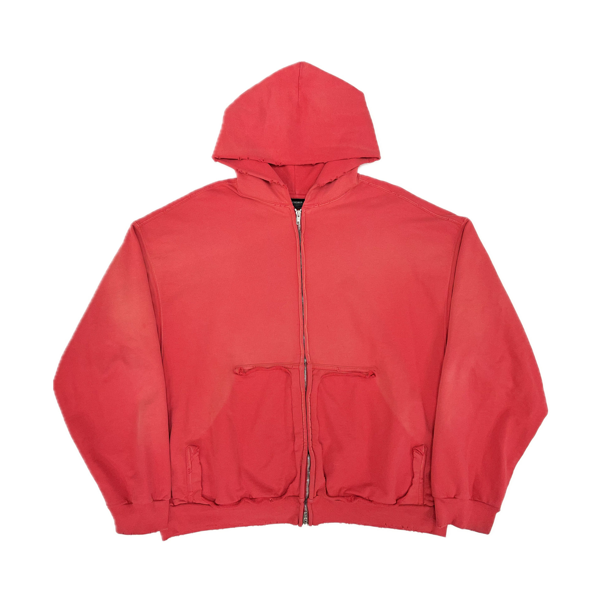 Balenciaga Tape Type Ripped Pocket Zip Up Hoodie Red